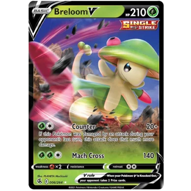 Introducing the powerful 006/264 Breloom V card, a must-have for any Pokémon TCG player looking to enhance their deck! This stunning card features striking artwork and formidable abilities that will give you the edge in battles. With Breloom V by your side, youll be able to dominate your opponents and claim victory in intense Pokémon battles. Add this impressive card to your collection today and take your gameplay to the next level!