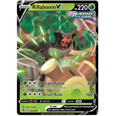 Enhance your Pokémon TCG deck with the powerful 022/264 Rillaboom V card! This Grass-type Pokémon boasts impressive attack and HP stats, making it a formidable addition to your gameplay strategy. With its unique abilities and strategic moves, Rillaboom V is a must-have card for any trainer looking to dominate their opponents. Level up your collection and reign supreme in battles with the mighty Rillaboom V by your side. Catch em all at De Spelvog