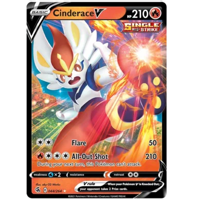 Introducing the powerful 044/264 Cinderace V card from the Pokémon Trading Card Game! This fiery Pokémon is ready to heat up your battles with its impressive attacks and abilities. Add Cinderace V to your deck and dominate your opponents with its blazing speed and fierce strength. Dont miss out on this must-have card for any Pokémon TCG player!