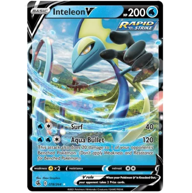 Enhance your Pokémon TCG deck with the formidable 078/264 Inteleon V card! This powerful Water-type Pokémon features impressive attacks and abilities that can turn the tide of any battle. With its sleek design and strategic prowess, Inteleon V is a must-have addition for any trainer looking to dominate their opponents. Add this card to your collection today and level up your gameplay!