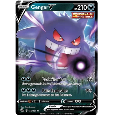 Introducing the formidable 156/264 Gengar V card, a must-have for any serious Pokémon TCG player! This ghost-type Pokémon boasts impressive abilities and attacks that can turn the tide of any battle. With its haunting presence and strategic moves, Gengar V is a valuable addition to your deck. Add this powerful card to your collection today and dominate your opponents in epic Pokémon battles!