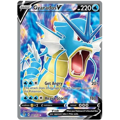 Looking to strengthen your Pokémon TCG deck? Look no further than the 171/203 Gyarados V card! This powerful Water-type Pokémon boasts impressive stats and formidable attacks to dominate your opponents. With its intimidating presence and strategic capabilities, adding Gyarados V to your collection will surely make a splash in your battles. Enhance your gameplay and outsmart your rivals with the 171/203 Gyarados V card today!