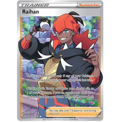 Enhance your Pokémon TCG deck with the powerful 202/203 Raihan card! This full-art supporter card is a must-have for any competitive player looking to strengthen their strategy. Raihans ability to search for Dragon Pokémon and attach energy from your deck makes it a valuable addition to your collection. Level up your game with the 202/203 Raihan card and dominate your opponents on the battlefield!