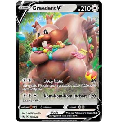 Introducing the powerful 217/264 Greedent V card! This Pokémon card is a must-have for any trainer looking to enhance their deck with formidable strength and strategic abilities. With its impressive HP and versatile attacks, Greedent V is a valuable addition to your collection. Whether youre a seasoned player or just starting out, this card is sure to bring excitement and intensity to your battles. Dont miss out on the opportunity to add Greedent V to your lineup and dominate the competition