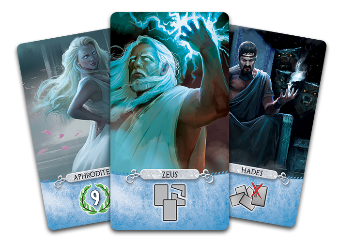 With Isis on your side, you can use a card from the discard pile to construct one of your Wonders for free. Zeus, whose nod determines what happens and what does not, enables you to discard any single card from the card structure that you want, as well as any mythology or offering token that may be on it. The Phoenician goddess Tanit, whose people were renowned for trade, fills your coffers with twelve pieces of gold. Enki, the Sumerian god of crafts, technology, and creation, lets you choose one of two progress tokens. Minerva’s ability to stop the conflict pawn from moving toward you can assist with a military victory or save you from military defeat.