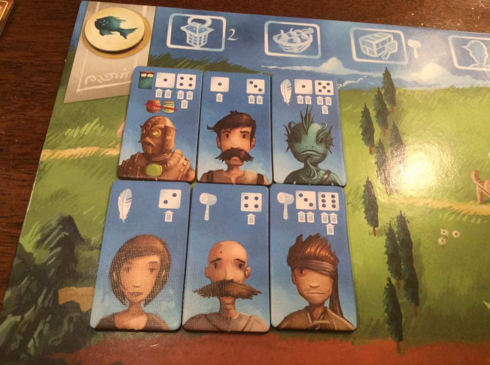 Each villager has unique skills and abilities, and you must decide how to best use them. You have your own personal village board, and you slide the villagers on this board to various areas to indicate that they’ve been given jobs to do. Will you send Hanna along on the expedition to the cave? Or should she instead spend her time teaching important skills to one of the young villagers?