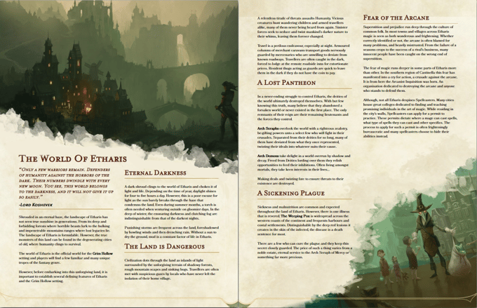 - If youâve been searching for an in-depth resource overflowing with lore, notable NPCâs, a range of new mechanics, items and spells; an imaginative, gripping and downright fear-inducing campaign guide then prepare yourself, for you have stumbled upon what you seek.