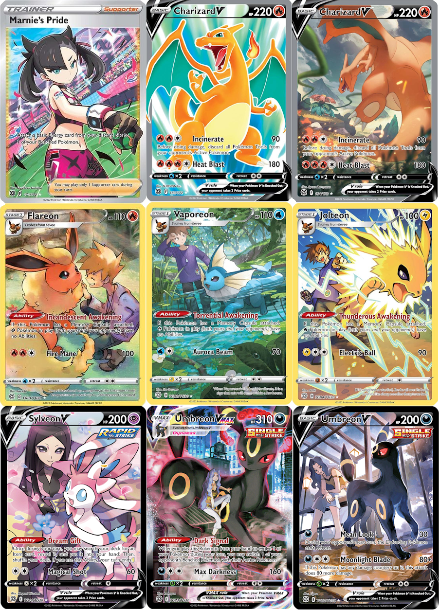 Shaymin VSTAR, Charizard VSTAR en Whimsicott VSTAR ondervinden dat ze geweldige nieuwe VSTAR-krachten hebben gekregen, terwijl Mimikyu VMAX, Aggron VMAX en Kingler VMAX in zijn enorme Gigantamax-vorm ook veel sterker zijn geworden.
