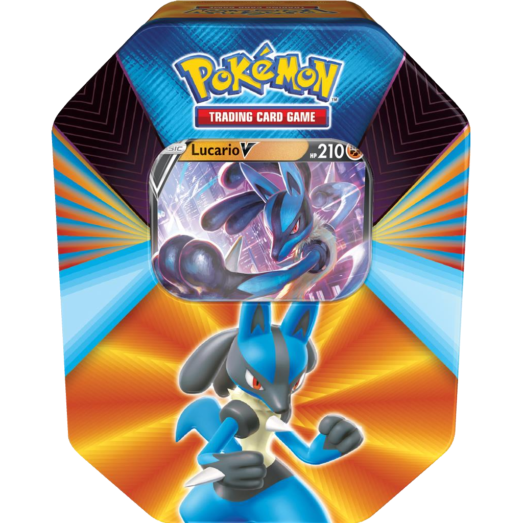 De Pokémon V Forces Tin is beschikbaar in de varianten Slowbro, Lucario en Mew.