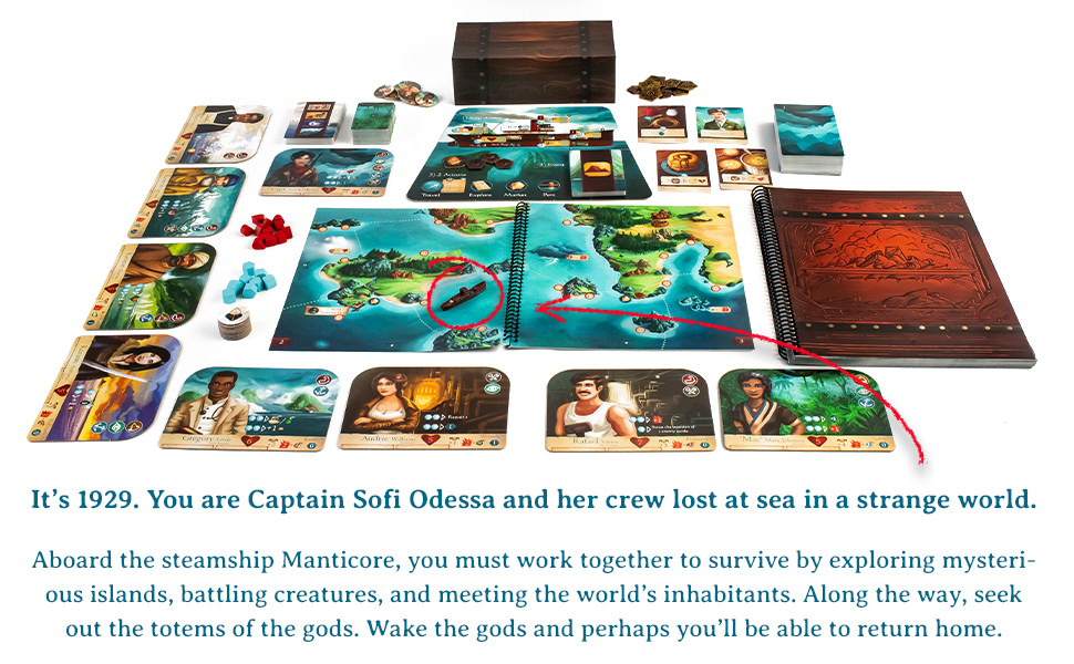 In Sleeping Gods, you and up to 3 friends become Captain Sofi Odessa and her crew, lost in a strange world in 1929 on your steamship, the Manticore. You must work together to survive, exploring exotic islands, meeting new characters, and seeking out the totems of the gods so that you can return home.