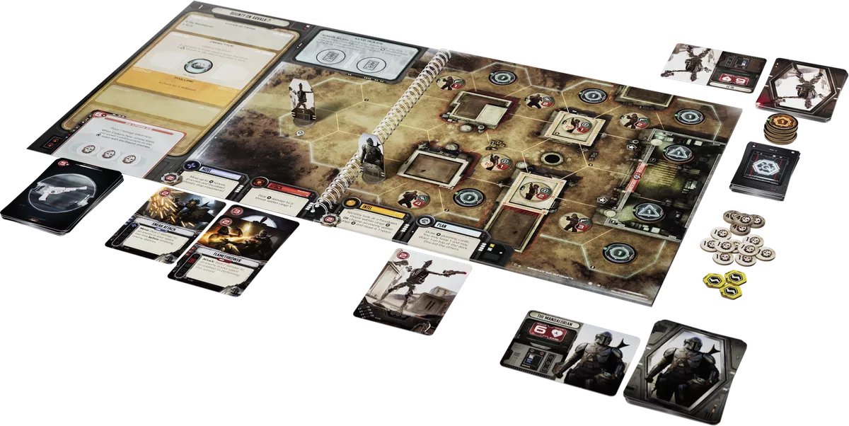 Step into the rugged boots of a lone bounty hunter and relive the thrilling adventures of The Mandalorian in this immersive cooperative tabletop game!