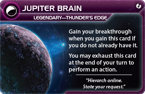 As a legendary planet, controlling Thunder’s Edge provides some hefty boons. In addition to the planet itself providing an impressive 5 resources, the Jupiter Brain ability on its legendary planet card grants you access to your breakthrough (if you don’t already have it) and lets you perform an extra action at the end of your turn once per round. Being able to perform two actions in one turn breaks open the door to all sorts of possibilities, which means control of this new frontier world could quite literally decide the fate of the game!